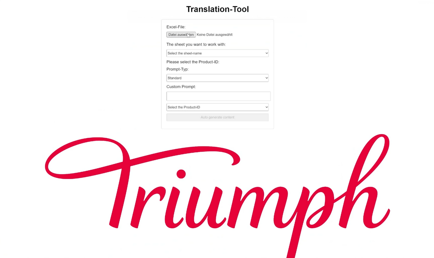 Für Triumph soll der Übersetzungsprozess internationaler Produktbeschreibungen effizienter gestaltet werden. Ziel ist es, Zeit im operativen Alltag zu sparen, manuelle Aufwände zu reduzieren und fachliche Inhalte zuverlässig und konsistent zu übertragen.